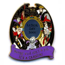 2001 - Villains - Being Evil Isn't a Job, It's A Career! is a Limited Edition (LE) 3500 pin from the Labor Day pin series. It was originally released on , 2001 and was available from Multiple Sources (WDW, DLR, etc.).