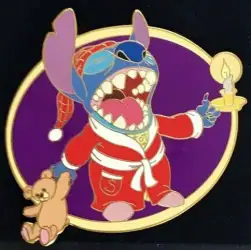 Stitch at Bedtime is a Limited Edition (LE) 1000 pin from the Lilo & Stitch pin series. It was originally released on , 2004 and was available from Disney Auctions .