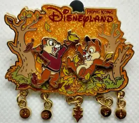 Chip and Dale in the Autumn is an Open Edition pin from the Chip & Dale Seasons pin series. It was originally released in September, 2007 and was available from Hong Kong Disneyland .