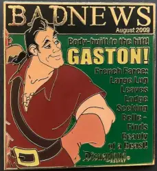 August (Gaston) is a Limited Edition (LE) 1000 pin from the Bad News Magazine Collection (POTM) pin series. It was originally released in August, 2009 and was available from Disneyland Resort .