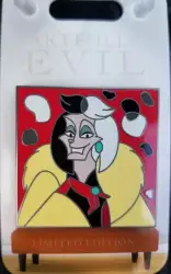 Cruella is a Limited Edition (LE) 3000 pin from the Artfully Evil pin series. It was originally released on , 2021 and was available from Multiple Sources (WDW, DLR, etc.).