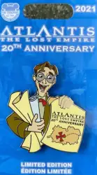 20th Anniversary - Milo Thatch is a Limited Edition (LE) 3000 pin from the Atlantis: The Lost Empire pin series. It was originally released in June, 2021 and was available from Multiple Sources (WDW, DLR, etc.).