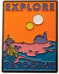 Tatooine Set - Explore Tatooine Poster ONLY is a Limited Edition (LE) 5000 pin in the Tatooine Set - Complete 6-pin set from the Amazon - Star Wars Adventure Across the Galaxy pin series. It was originally released in March, 2021 and was available from an Officially Licensed Disney trading pin vendor (see description for more information).