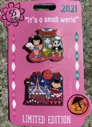 Small World 55th Pen Set - China and Parisienne Girls is a Limited Edition (LE) 2000 pin from the It's a Small World 55th Anniversary pin series. It was originally released on , 2021 and was available from Disneyland Resort .