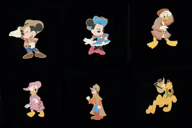 Mickey, Minnie, Donald, Daisy, Goofy and Pluto is a Limited Edition (LE) 100 pin from the Cowboy Mickey Frontier Set pin series. It was originally released on , 2006 and was available from Disney Store US .