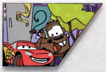 Lightning McQueen and Mater is a Limited Edition (LE) 550 pin in the Disneyland Park 60th Mystery Set 8-pin set from the 60th Diamond Celebration - Mystery Puzzle Pack Series Four pin series. It was originally released on , 2016 and was available from Disneyland Resort .