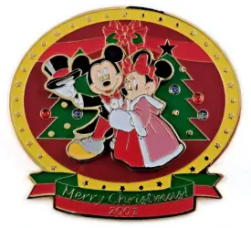 Merry Christmas 2001 Mickey and Minnie is a Limited Edition (LE) 2800 pin from the Mickey & Friends ‘Xmas Pin Collection pin series. It was originally released in December, 2001 and was available from an Officially Licensed Disney trading pin vendor (see description for more information).