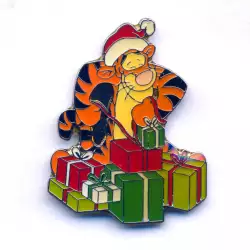 Tigger Wrapping Presents is an Open Edition pin from the 100 Acre Christmas Collection pin series. It was originally released 2002 and was available from Disney Store US .