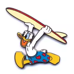Donald Carrying a Surfboard is an Open Edition pin from the Summer Series 2000 pin series. It was originally released on , 2000 and was available from Disneyland Resort .