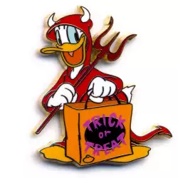 Devil Donald Duck w/Trick or Treat Bag is an Open Edition pin from the Cast Lanyard Refresh pin series. It was originally released on , 2008 and was available from Disneyland Resort Paris .
