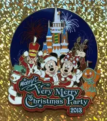 WDW - Mickey’s Very Merry Christmas Party 2013 - Mickey and Friends Jumbo is a Limited Release pin from the Mickey's Very Merry Christmas Party (MVMCP) 2013 pin series. It was originally released on , 2013 and was available from Walt Disney World .