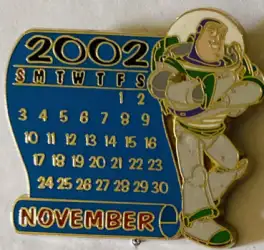 November - Buzz is an Open Edition pin from the 12 Months of Magic - Calendars pin series. It was originally released on , 2002 and was available from Disney Store US .