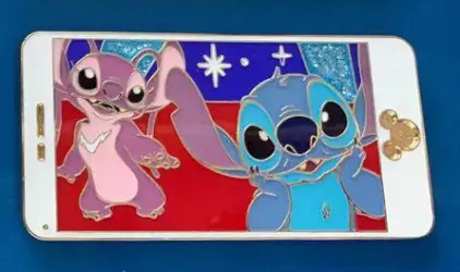 Cell Phone Set - Stitch and Angel is a Limited Edition (LE) 500 pin in the Cell Phone Set — Full Set 4-pin set from the Pin Trading Fun Day 2021 pin series. It was originally released on , 2021 and was available from Shanghai Disney Resort .