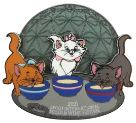 The Aristocats is a Limited Edition (LE) 4000 pin from the EPCOT International Food & Wine Festival 2021 pin series. It was originally released on , 2021 and was available from Walt Disney World .