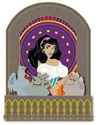 Esmeralda is a Limited Edition (LE) 400 pin from the The Hunchback of Notre Dame 25th Anniversary pin series. It was originally released in July, 2021 and was available from Disney Studio Store Hollywood / Soda Fountain .