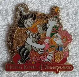 Donald and Daisy dancing is a Limited Edition (LE) 300 pin from the Holiday pin series. It was originally released in November, 2009 and was available from Hong Kong Disneyland .