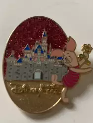 Piglet Holding Flowers is an Open Edition pin from the Character & Castle Mystery Tin Collection pin series. It was available from Hong Kong Disneyland .