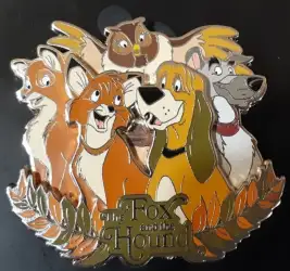 The Fox and the Hound 40th Anniversary is a Limited Edition (LE) 2000 pin from the Fox and the Hound 40th Anniversary pin series. It was originally released on , 2021 and was available from Multiple Sources (WDW, DLR, etc.).