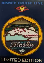 Alaska Disney Wonder Cruise is a Limited Edition (LE) 1500 pin from the Disney Cruise Line Destinations: Alaska pin series. It was originally released in January, 2020 and was available from Disney Cruise Line .