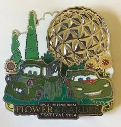 Mater & Lightning McQueen Topiaries is a Limited Edition (LE) 2000 pin from the EPCOT International Flower & Garden Festival 2014 pin series. It was originally released on , 2014 and was available from Walt Disney World .
