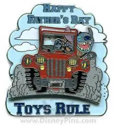2007 - Toys Rule - Stitch in Jeep is a Limited Edition (LE) 2500 pin from the Father's Day pin series. It was originally released on , 2007 and was available from Walt Disney World .