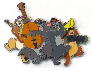 Alley Cats - Hit Cat, Billy Boss, Scat Cat, and Peppo is a Limited Edition (LE) 3000 pin from the Aristocats 50th Anniversary pin series. It was originally released on , 2020 and was available from Multiple Sources (WDW, DLR, etc.).