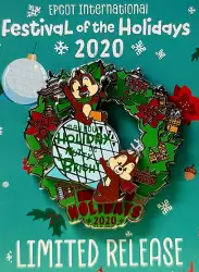 May Your Holiday be Nutty Bright - Chip & Dale Wreath is a Limited Release pin from the EPCOT International Festival of the Holidays pin series. It was originally released on , 2020 and was available from Walt Disney World .