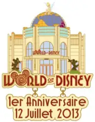 First Anniversary (12 Juillet 2013) is a Limited Edition (LE) 600 pin from the World of Disney Anniversaries pin series. It was originally released on , 2013 and was available from Disneyland Resort Paris .