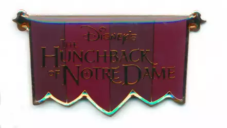 The Hunchback of Notre Dame Banner (Cast Exclusive) is an Open Edition pin. It was originally released on , 1996 and was available from Multiple Sources (WDW, DLR, etc.).