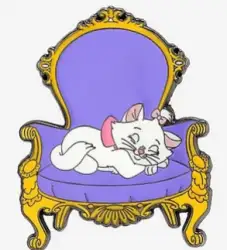 Marie in purple chair is an Open Edition pin from the BoxLunch - Lounging Pets pin series. It was originally released on , 2021 and was available from Loungefly .