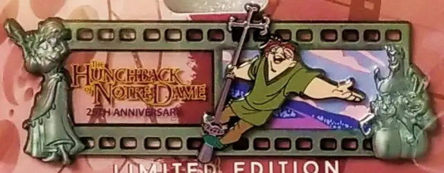 The Hunchback of Notre Dame 25th Anniversary is a Limited Edition (LE) 250 pin from the Anniversary Film Strip Series pin series. It was originally released on , 2021 and was available from Walt Disney Imagineering .
