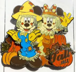 2021 Scarecrow Mickey & Minnie is a Limited Edition (LE) 2000 pin from the Disney Parks Seasons - Fall/Autumn pin series. It was originally released on , 2021 and was available from Multiple Sources (WDW, DLR, etc.).