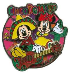 Mickey and Minnie is a Limited Edition (LE) 3500 pin from the Cinco de Mayo pin series. It was originally released on , 2010 and was available from Multiple Sources (WDW, DLR, etc.).