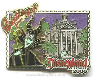Haunted Mansion - Maleficent is a Limited Edition (LE) 1000 pin from the Greetings from Disneyland Postcards 2006 Collection pin series. It was originally released on , 2006 and was available from Disneyland Resort .
