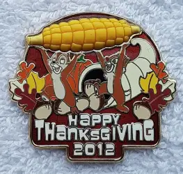 Chip and Dale is a Limited Edition (LE) 3000 pin from the Thanksgiving pin series. It was originally released on , 2012 and was available from Multiple Sources (WDW, DLR, etc.).