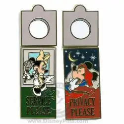 Service / Privacy Please hotel door sign (Mickey and Minnie) is an Open Edition pin from the Cast Exclusive pin series. It was originally released on , 2006 and was available from Theme Park Cast Member Exclusive .