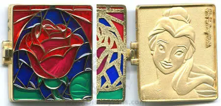 Belle with a Rose is an Open Edition pin from the Hinged Character Stained Glass pin series. It was originally released on , 2006 and was available from Walt Disney World .
