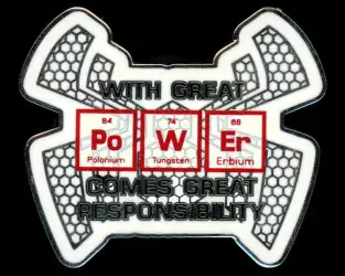 With Great Power is an Open Edition pin in the W.E.B. Pin Set 4-pin set from the W.E.B. Worldwide Engineering Brigade pin series. It was originally released on , 2021 and was available from Disneyland Resort .
