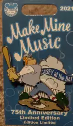 Casey at the Bat is a Limited Edition (LE) 3000 pin from the Make Mine Music pin series. It was originally released on , 2021 and was available from Multiple Sources (WDW, DLR, etc.).