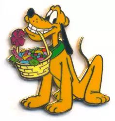 Pluto with an Easter Basket in his Mouth is a Limited Edition (LE) 2500 pin from the Easter 2002 pin series. It was originally released on , 2002 and was available from Disneyland Resort .
