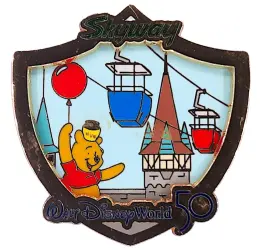 The Skyway Gondolas is a Limited Edition (LE) 2000 pin from the Walt Disney World 50th Anniversary Attraction Crests Collection pin series. It was originally released on , 2021 and was available from Walt Disney World .