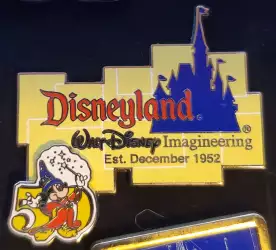 Disneyland Est December 1952 is a Limited Edition (LE) 1952 pin from the Disneyland Celebrates WDI's 50th Anniversary pin series. It was originally released on , 2002 and was available from Disneyland Resort .