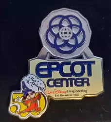 Epcot Center Est December 1952 is a Limited Edition (LE) 1952 pin from the Disneyland Celebrates WDI's 50th Anniversary pin series. It was originally released on , 2002 and was available from Disneyland Resort .