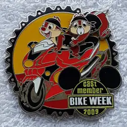 Chip and Dale - Bike Week 2009 is a Limited Edition (LE) 750 pin from the Cast Member pin series. It was originally released on , 2009 and was available from Theme Park Cast Member Exclusive .