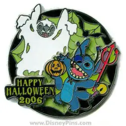 Happy Halloween 2006 Stitch Cast Exclusive is a Limited Edition (LE) 1500 pin from the Halloween 2006 pin series. It was originally released on , 2006 and was available from Walt Disney World .