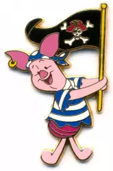 Piglet Holding a Pirate Flag is an Open Edition pin from the Pirate Winnie the Pooh and Friends pin series. It was originally released on , 2007 and was available from Multiple Sources (WDW, DLR, etc.).