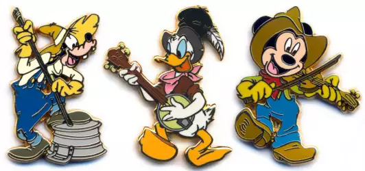 Mickey Fiddle, Donald Banjo & Goofy Wash Tub Bass is an Open Edition pin from the Western Band 3 Pin Set pin series. It was originally released in January, 2005 and was available from Disneyland Resort Paris .