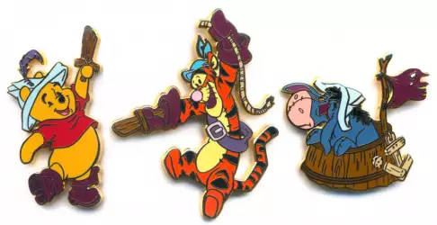 Pooh, Eeyore and Tigger is an Open Edition pin from the Pooh & Friends Pirates 3 Pin Set pin series. It was originally released on , 2005 and was available from Disneyland Resort Paris .