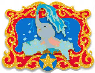 Dumbo Bathing is a Limited Edition (LE) 250 pin from the Dumbo 80th Anniversary pin series. It was originally released on , 2021 and was available from Walt Disney Imagineering .