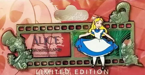 Alice in Wonderland 70th Anniversary is a Limited Edition (LE) 250 pin from the Anniversary Film Strip Series pin series. It was originally released on , 2021 and was available from Walt Disney Imagineering .